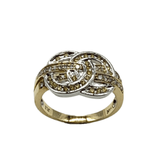 14K Yellow Gold Baguette and Round Diamond Swirl Ring